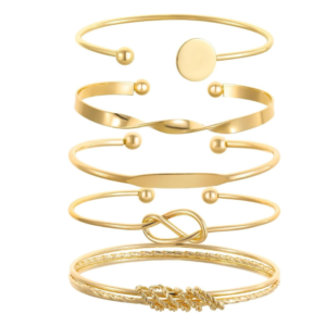 Gold Tone Multi-Layer Stackable Bracelet Set – 5 Pieces