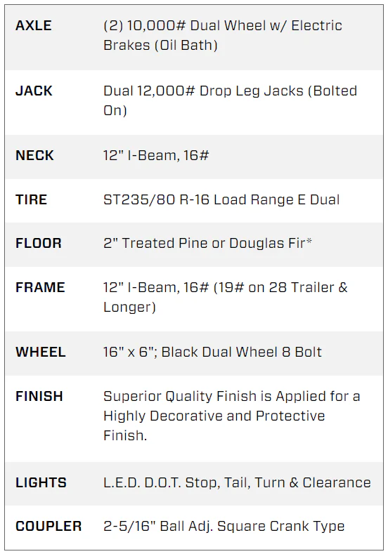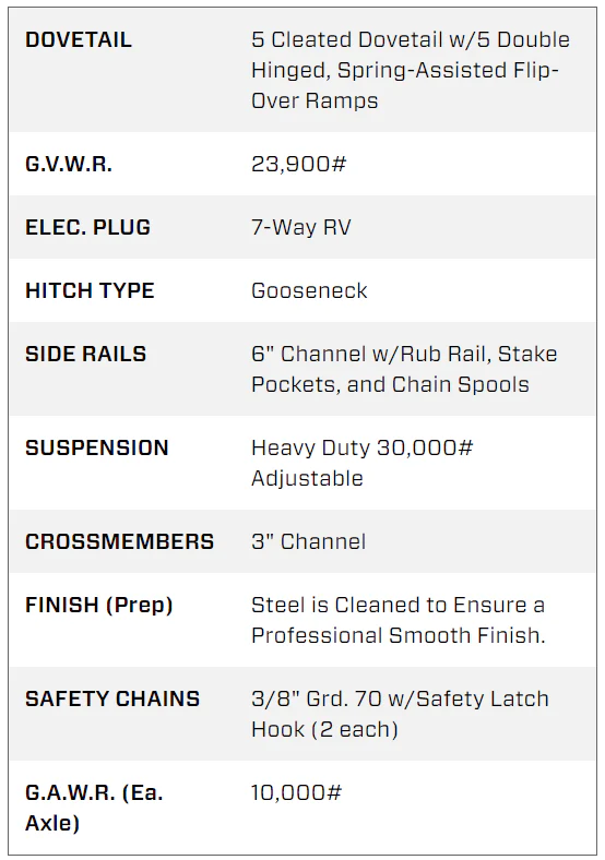 With a 35 ft deck and 5 ft Mega Ramps, it delivers maximum loading flexibility. The trailer’s dual-wheel tandem axles provide outstanding load capacity, while its pierced-beam frame design enhances strength and lowers the deck height for smoother loading and better stability.