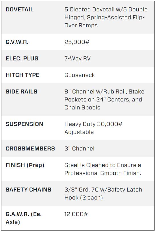• Coupler Type: 2-5/16” adjustable gooseneck coupler