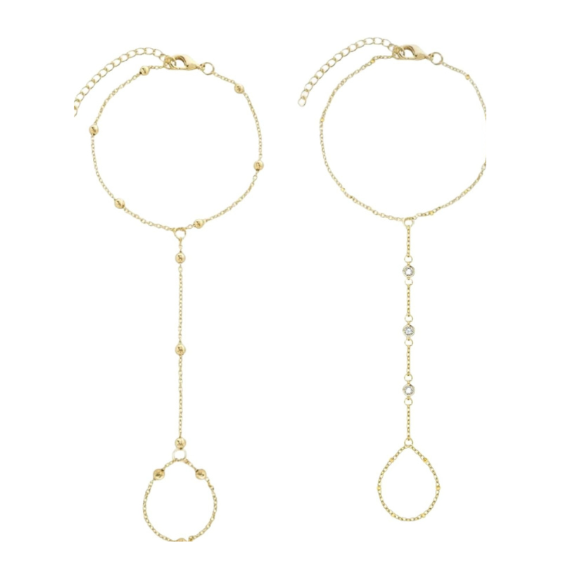 Gold Tone Hand Chain Bracelet with Finger Ring a – Adjustable
