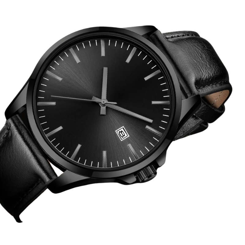 Men’s Minimalist Analog Leather Strap Watch – 43mm Dial with Date Window