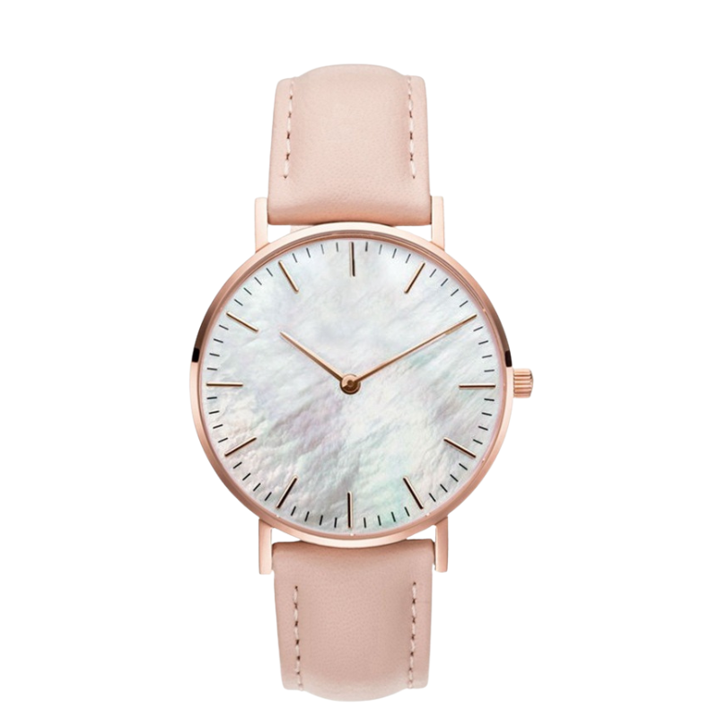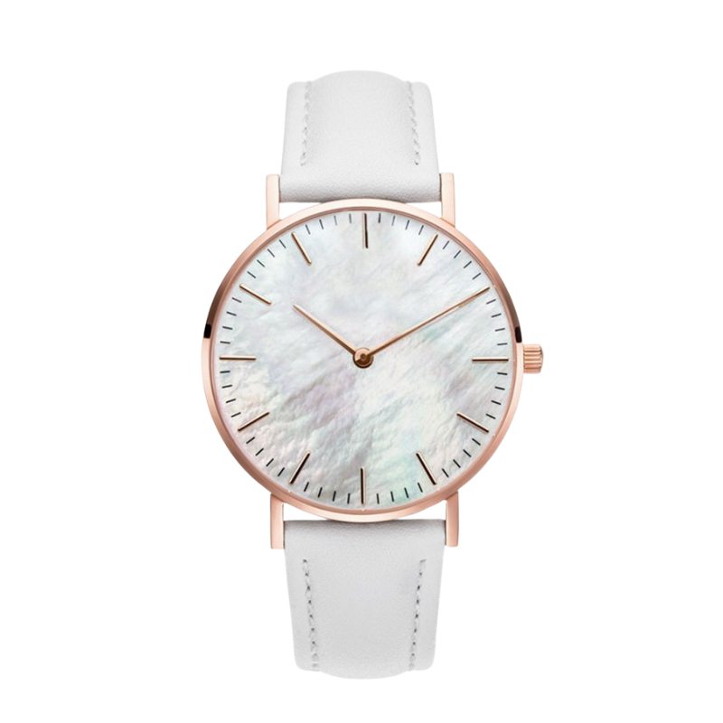 Quartz Analog Women’s Wrist Watch with Shell Dial and Leather Strap