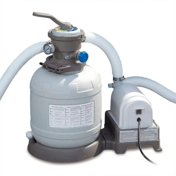 - Includes 12-inch 110/120V sand filter pump, pool cover, ladder, ground cloth, and maintenance kit