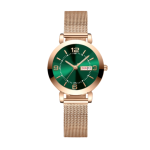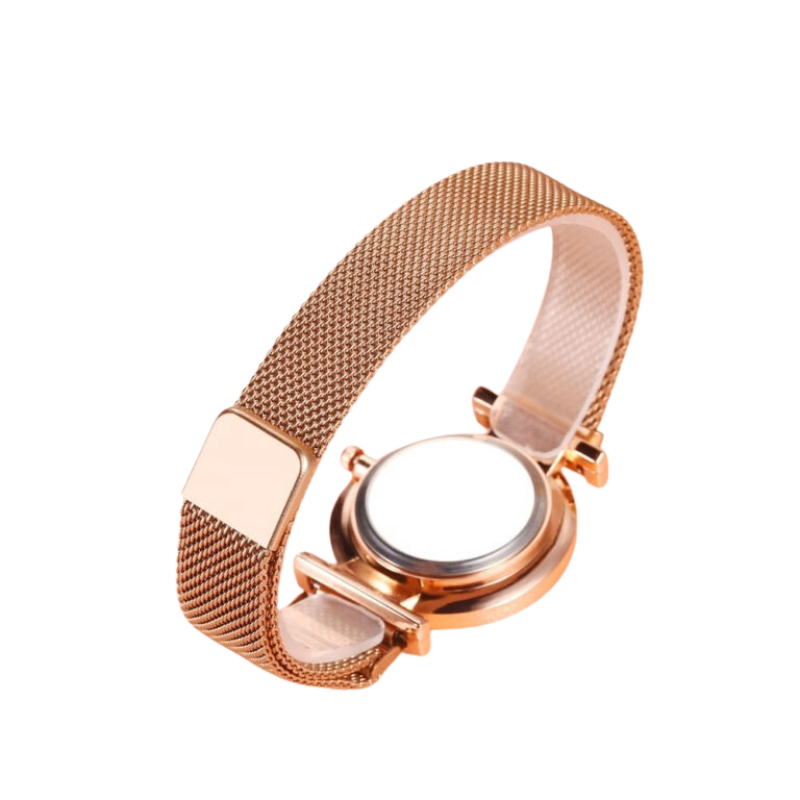 This women’s quartz watch features a smooth pointer dial paired with an adjustable magnetic Milanese strap for a comfortable and secure fit. The alloy case and coated glass dial window create a clean, elegant appearance suitable for daily wear, casual outfits, and evening looks. With its slim profile and easy-read Roman numeral markers, it offers a stylish balance of simplicity and comfort.
