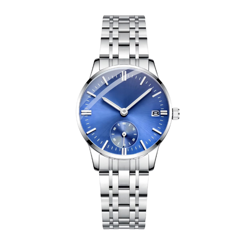 The watch includes a stainless steel strap with a fold-over clasp closure. With 3 ATM water resistance, it is suitable for daily activities such as handwashing and light rain. The design is simple and suitable for everyday wear, work, and casual occasions.